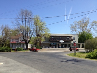Across the street to the north is the Greenwood General Store, now an antique shop, with apartments above.